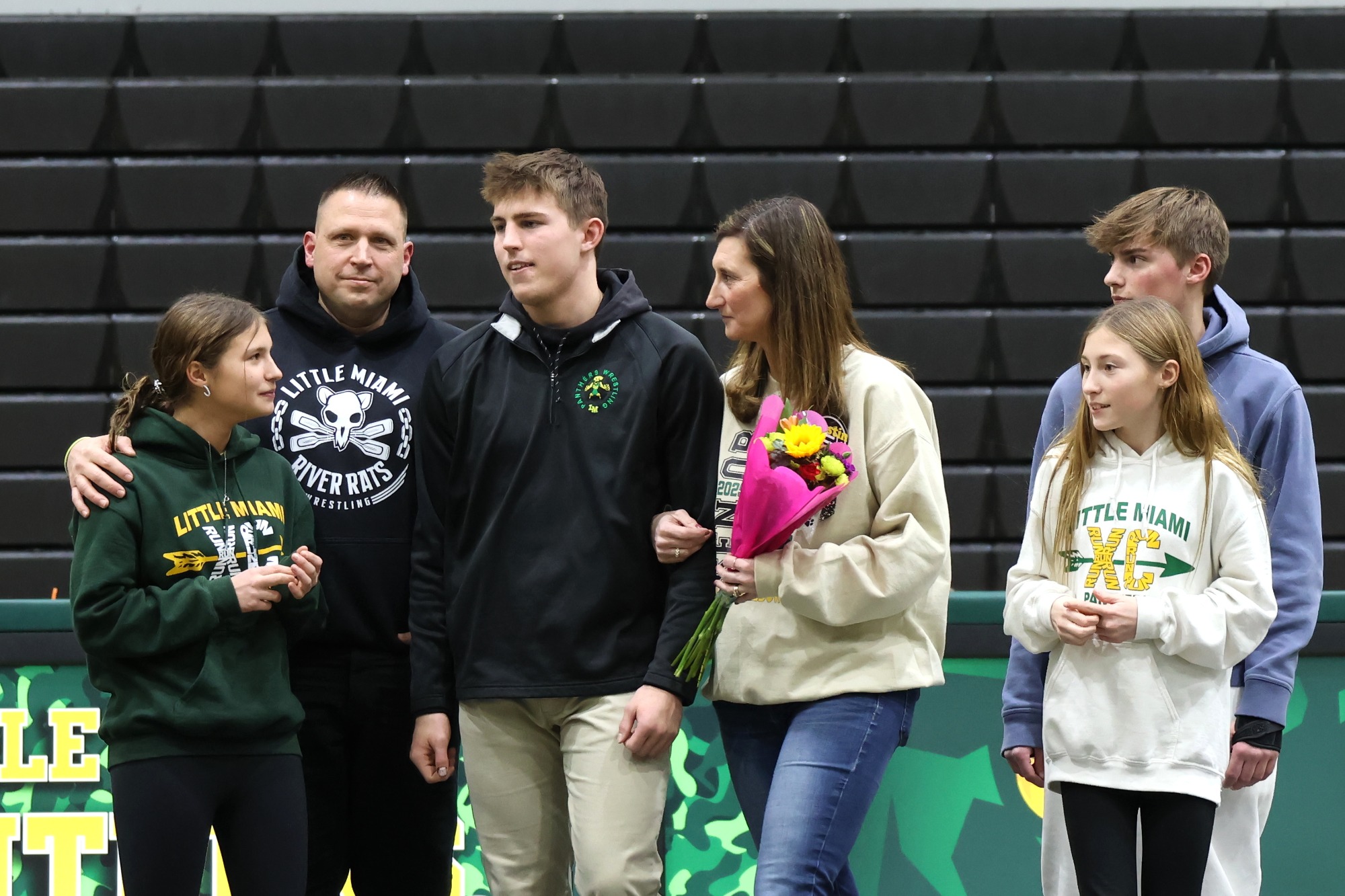 Little Miami senior Brentan Simmerman was named the ECC Wrestler of the Year as he outlasted Lebanon's Tanner Smith 6-0 to win the 215-pound class. Other Panther placers included Lincoln Music-Quick who also took gold by pinning Milford's Cameron Center at the 4:25 mark in the 190 class. In the battle for bronze, Sam Like (113) defeated West Clermont's Marcus Giddens 7-3 to make the podium, and Reid Prenger (120) did the same by pinning Lebanon's Joe Tarkin at the 4:25 point. Also claiming victory in The Round was Little Miami's Nathan Rebman (144) who defeated Lebanon's Liam Sprague 3-0, and Austin Dipzinski (157) who tech falled West Clermont's Devon Price.